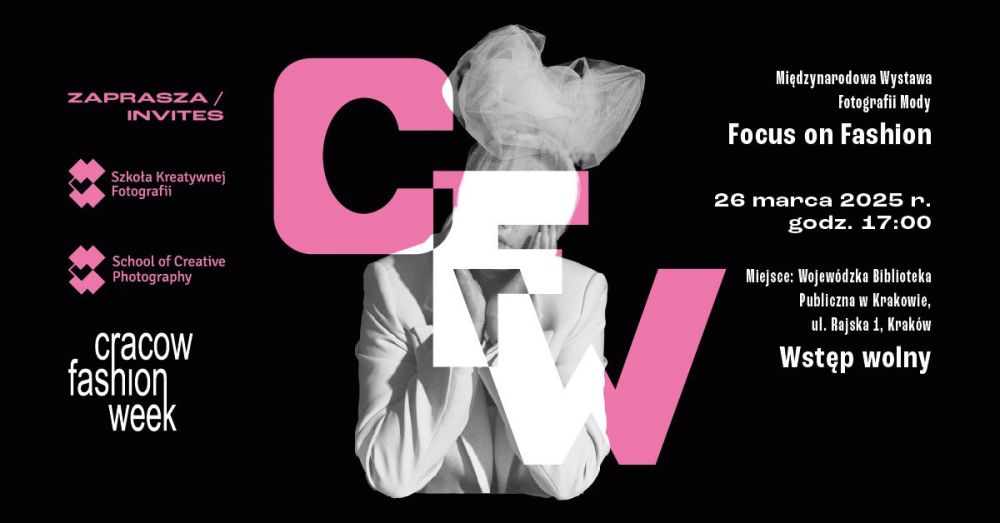Jedno z najważniejszych wydarzeń towarzyszących tegorocznej edycji Cracow Fashion Week – międzynarodowa wystawa fotografii mody „Focus on Fashion” – zostanie otwarte 26 marca 2025 roku o godz. 17:00 w Wojewódzkiej Bibliotece Publicznej w Krakowie.