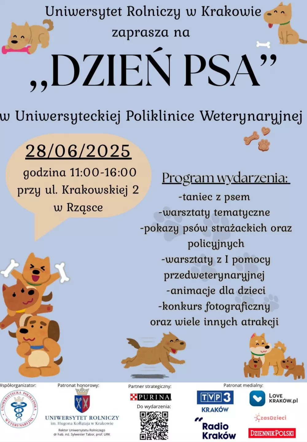 Już w najbliższą sobotę, 28 czerwca 2025 r., teren Uniwersyteckiej Polikliniki Weterynaryjnej przy ul. Krakowskiej 2 w Rząsce zamieni się w miejsce pełne radości, edukacji i wyjątkowych emocji. Wszystko za sprawą „Dnia Psa” – wydarzenia, które łączy miłość do zwierząt z edukacją i rozrywką dla całych rodzin. Wydarzenie potrwa od godziny 11:00 do 16:00.