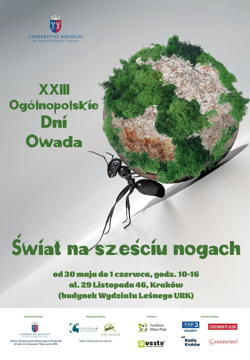 Uniwersytet Rolniczy im. Hugona Kołłątaja w Krakowie po raz dwudziesty trzeci zaprasza na Ogólnopolskie Dni Owada, które odbędą się w dniach 30 maja – 1 czerwca 2025 roku w godzinach od 10:00 do 16:00 w budynku Wydziału Leśnego (al. 29 Listopada 46). Tegoroczna edycja odbedzie się pod hasłem „Świat na sześciu nogach”, a wstęp na wszystkie wydarzenia jest bezpłatny.