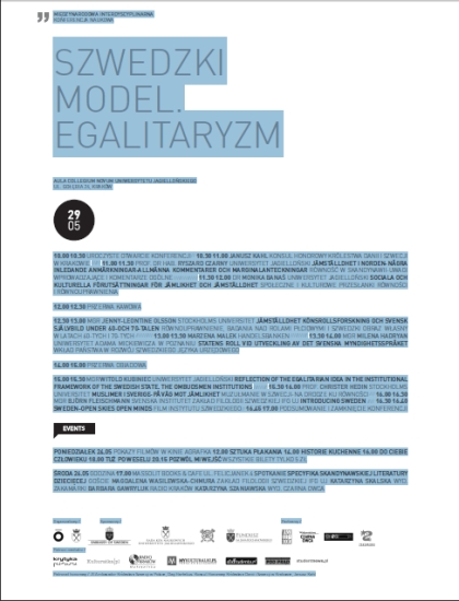 Międzynarodowa Interdyscyplinarna Konferencja Naukowa Szwedzki model. Egalitaryzm jest pierwszą z cyklu konferencji poświęconych wybranym elementom systemu społeczno-politycznego Szwecji.