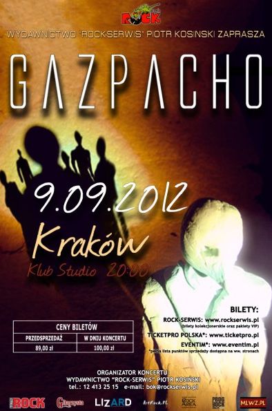 9 września w klubie Studio odbędzie się koncert Gazpacho, start godzina 20:00.