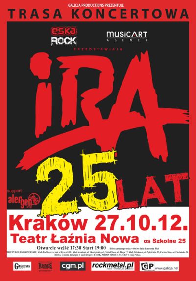 Koncert 27 października 2012 w Krakowie, Teatr Łaźnia Nowa os Szkolne 25. Otwarcie wejść: 17:30; start: 19:00. Bilety przedsprzedaż 40zł w dniu koncertu 50zł.