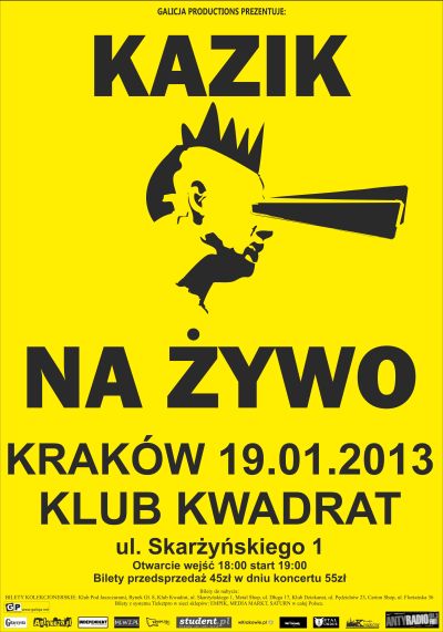 Kraków – 19.01.2013 – Klub Kwadrat ul. Skarżyńskiego 1. Otwarcie wejść 18:00 start 19:00. Bilety przedsprzedaż 45zł w dniu koncertu 55zł.