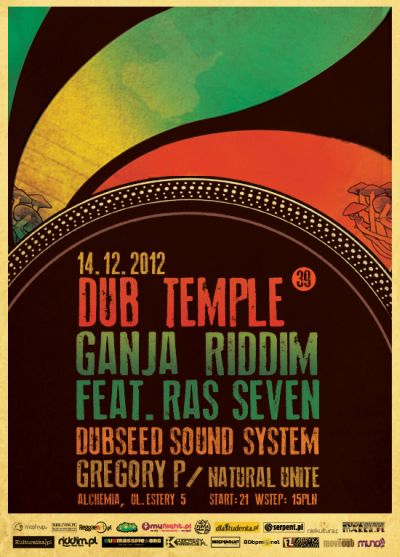 Na przestrzeni ostatnich lat Dub Temple gościło wiele uznanych artystów z różnych krajów min. Holandii, Włoch, Litwy, Wielkiej Brytanii czy Francji. Tym razem przyszedł czas na czołowych niemieckich artystów sceny reggae/dub: trzyosobową ekipe Ganja Riddim Sound System wraz z wiodącym prym na tamtejszej scenie sound systemowej wokalistą Ras Seven. Wszyscy jesteśmy ciekawi szkoły grania naszych zachodnich sąsiadów. Doświadczymy tego juz wkrótce 14.12.2012 w krakowskiej Alchemii!