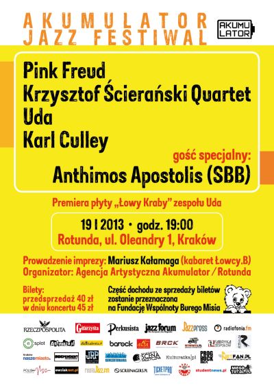 AKUMULATOR JAZZ FESTIVAL, czyli PINK FREUD, UDA, APOSTOLIS ANTHIMOS TRIO oraz KARL CULLEY w krakowskiej Rotundzie już 19 stycznia 2013!