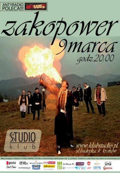 9 marca 2013 roku o godz. 20:00 Klub Studio (Kraków ul. Budryka 4) odwiedzi Zakopower - formacja założona przez Sebastiana Karpiela-Bułeckę. Zespół ów to najbardziej znany przykład łączenia ludowej twórczości Podhala z współczesną elektroniką oraz rockowym pazurem.