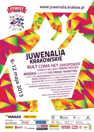 Czwartek, 9 maja 2013 Wielki Juwenaliowy Koncert Plenerowy ---> Scena Plenerowa przy Studium WFiS UJ, Piastowska 26 - Laureat DachOOFka Festival oraz Lao Che, Coma i Kult