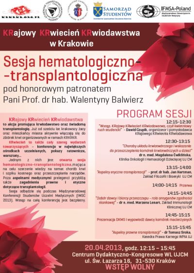 Sesja odbędzie się podczas Międzynarodowej Konferencji Studentów Uczelni Medycznych (IMSC 2013) w sobotę, 20 kwietnia.