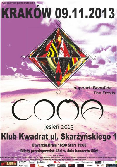 Kraków – 09.11.2013 – Klub Kwadrat ul. Skarżyńskiego 1. Otwarcie Bram 18:00 Start 19:00. Bilety przedsprzedaż 45zł w dniu koncertu 55zł.