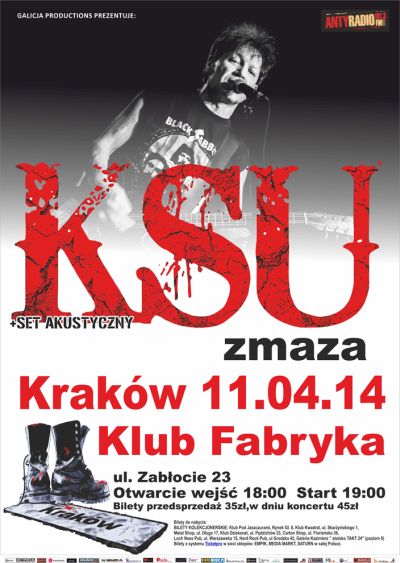 Kraków – 11.04.2014 – Klub Fabryka ul. Zabłocie 23. Otwarcie wejść 18:00 start 19:00. Bilety przedsprzedaż 35zł w dniu koncertu 45zł.