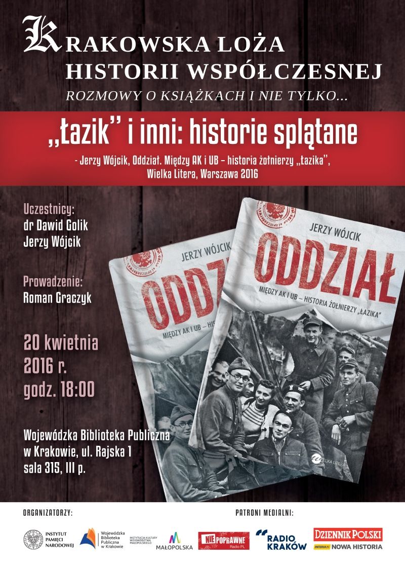 Instytut Pamięci Narodowej oraz Wojewódzka Biblioteka Publiczna w Krakowie zapraszają na spotkanie w Krakowskiej Loży Historii Współczesnej:"Łaziki inni: historie splątane". W dyskusji wezmą udział dr Dawid Golik oraz Jerzy Wójcik, a rozmowę poprowadzi jak zawsze Roman Graczyk.