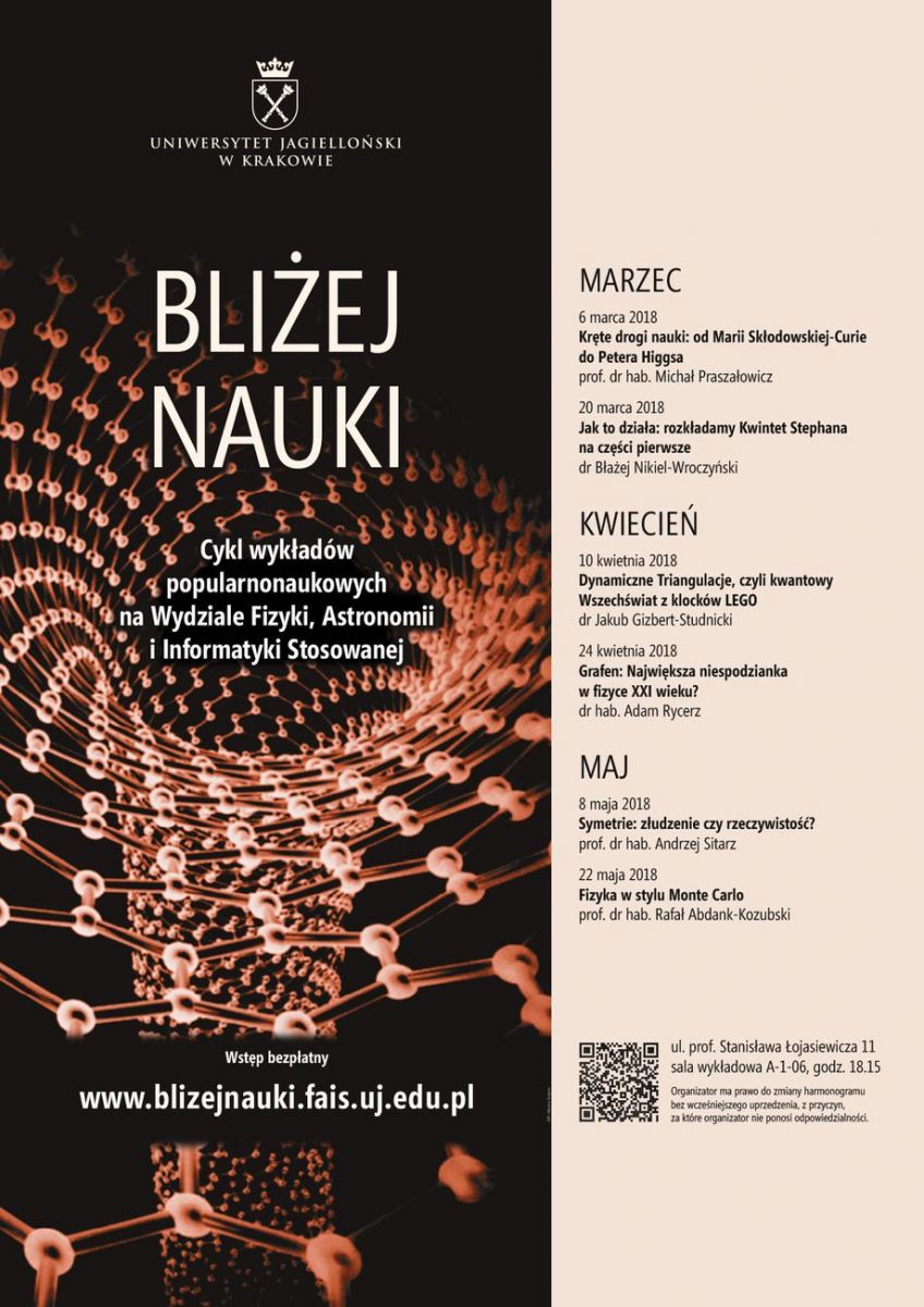 Uniwersytet Jagielloński zaprasza na wykład z cyklu Bliżej Nauki "Kręte grogi nauki: od Marii Skłodowskiej-Curie do Petera Higgsa", który odbędzie się 6 marca na Wydziale Fizyki, Astronomii i Informatyki Stosowanej UJ przy ul. Łojasiewicza 11. Uczestnictwo bezpłatne.