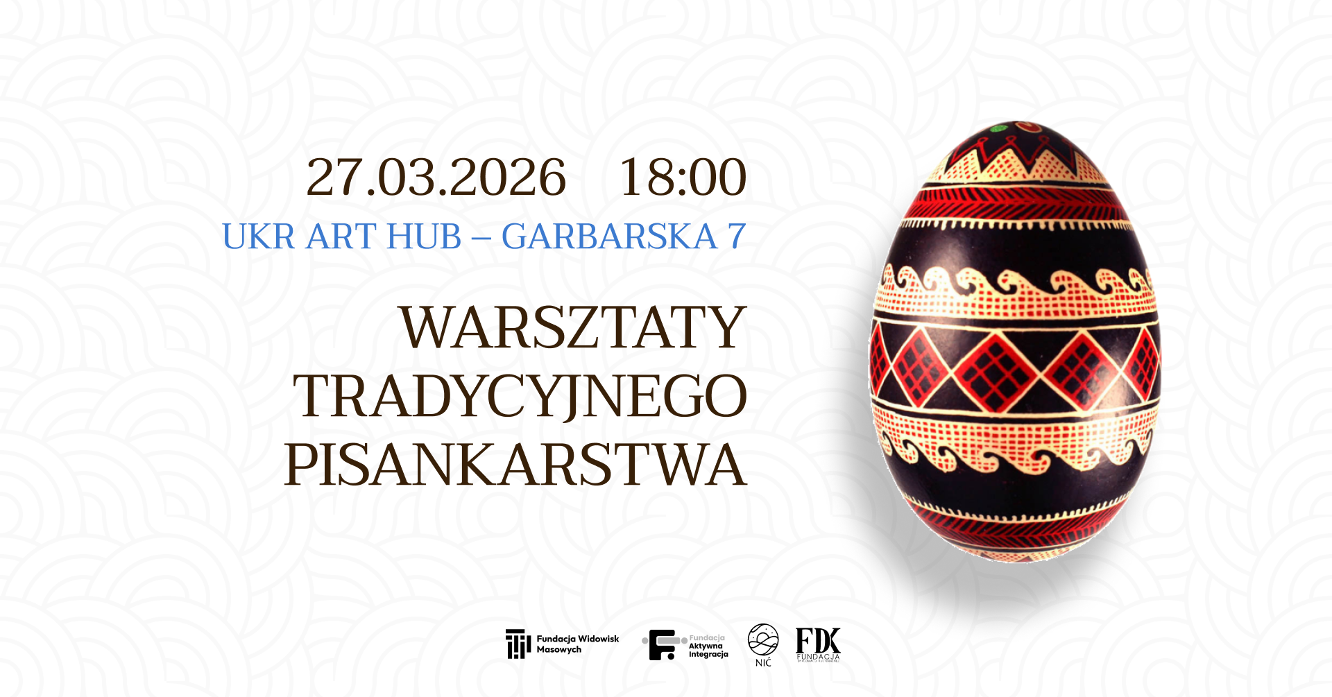 Zapraszamy Państwa na tradycyjne warsztaty pisania pisanek! Razem zapalimy świece, weźmiemy pisaki, roztopimy pachnący wosk pszczeli i zanurzymy się w świecie starożytnych symboli, kolorów i ciepłych rozmów. Kulminacją będzie magiczny moment, kiedy płomień świecy uwolni pisankę z woskowego kokonu, odsłaniając jej niepowtarzalny wzór.