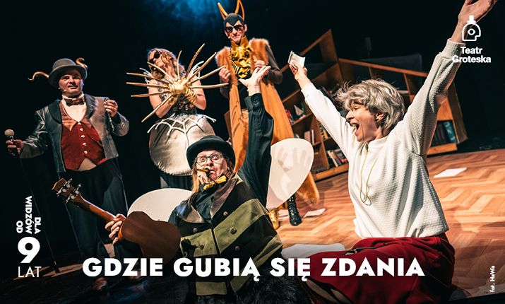 Spektakl Gdzie gubią się zdania to propozycja teatralna dla dzieci od 6 roku życia oraz ich rodziców, opiekunów lub pedagogów, opowiadająca o literatach krakowskich. Spektakl powstał z inspiracji Krakowem jako Miastem Literatury UNESCO i oparty jest na wątku zgubienia pewnego tajemniczego zdania przez główną bohaterkę – Wisławę Szymborską. By odnaleźć owo zdanie, poetka wyrusza w niezwykłą podróż, a towarzyszą jej dwaj równie niezwykli pomocnicy – Mól Futrzany i Rybik Cukrowy. Trójka wędrowców, podążając ukochanymi krakowskimi ścieżkami Noblistki, natrafia na bohaterów, którzy zaczerpnięci zostali z twórczości innych krakowskich literatów: Haliny Poświatowskiej (Pajęczyca, wiersz Pająk), Sławomira Mrożka (Gruby, Średni i Mały, dramat Na pełnym morzu), Stanisława Lema (Litery inspirowane opowiadaniem Jak ocalał świat), Wojciecha Widłaka (Mucha Bzyk-Bzyk z serii o Panu Kuleczce); ale spotykają na swojej drodze również samego Czesława Miłosza. Spektakl pomaga dostrzec, jak mocno Kraków związany jest z literaturą i jak silna relacja łączy ją z teatrem. Historia jest opowieścią o tym, jak ogromną wartość posiada niczym nieskrępowana zabawa skojarzeniami, inspiracjami i wytworami ludzkiej wyobraźni – czasem tej dziecięcej, o której zapominamy w codziennym pędzie; a także o bliskości z innymi istotami, które nie zawsze mają te cechy, których od nich najbardziej oczekujemy. /Michał Kaźmierczak, dramaturg/