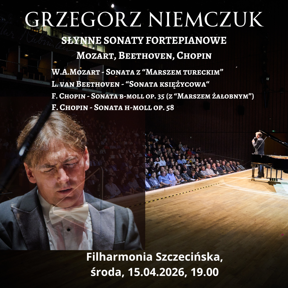 Grzegorz Niemczuk (zwycięzca Ogólnopolskiego Konkursu im. F. Chopina w Warszawie w 2010 roku oraz International Carnegie Hall Concerto Debiut Competition w Nowym Jorku w 2013 roku) to pianista o międzynarodowej renomie, który koncertował już na pięciu kontynentach – od nowojorskiej Carnegie Hall po sale koncertowe w Japonii, Chinach czy Australii. Ceniony za głęboką interpretację, liryczną wrażliwość i energię, jest artystą, który nie gra dla publiczności – on dzieli się sobą. Od wielu lat z pasją popularyzuje muzykę fortepianową, w szczególności dzieła Fryderyka Chopina, którym poświęca cykle koncertowe i autorskie projekty artystyczne.