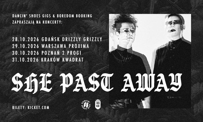She Past Away to jeden ze sztandarowych przedstawicieli dark-wave. Czerpią to co najlepsze z lat 80-tych m.in. z The Cure, Sisters Of Mercy i Clan of Xymox i łącząc to z minimalistyczną poezją turecką. Początki She Past Away sięgają 2006 roku, kiedy to wokalista / gitarzysta Volkan i basista Idris napisali swoje pierwsze piosenki. W 2009 roku do zespołu dołączył Doruk Ozturkcan (perkusja elektroniczna) i zespół nagrał debiutancką EPkę „Kasvetli Kutlama”. Po wydaniu albumu „Belirdi Gece” w 2012 roku i „Narin Yalnızlık” w 2015 roku, zespół powrócił z albumem „Disko Anksiyete”(Fabrika Records).
