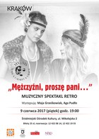 9 czerwca, piątek, godz. 19:00, Śródmiejski Ośrodek Kultury Teatr VIS A VIS oraz Grupa Artystyczna MAD PREZENTUJĄ SPEKTAKL MUZYCZNY W STYLU RETRO: „MĘŻCZYŹNI, PROSZĘ PANI…”