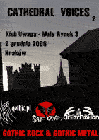 02 Grudnia w krakowskim klubie Uwaga (Mały Rynek 3) odbędzie się impreza Cathedral Voices II .Usłyszycie najbardziej znane kapele z kręgu muzyki gothic rock & gothic metal m.in. Tiamat, The Gathering, Lacrimosa, Theatre of Tragedy, Moonspell, Lacuna Coil, Within Temptation, Type O Negative, Dreadfull Shadows, My Dying Bride, Anathema, Closterkeller, Moonlight, Katatonia, Therion, Paradise Lost, Nightwish, Liv Kristine, Inkubus Sukkubus, XIII Stoleti...
