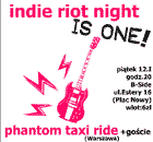 Indie Riot Night ma już rok!! i przygotowaliśmy imprezę urodzinową, jakiej jeszcze nie było. Zagra stołeczny Phantom Taxi Ride - czyli mieszanka zakręconych gitarowych dźwięków i chwytliwych brzmień syntezatorowych. Indie Riot Night ma już rok!! i przygotowaliśmy imprezę urodzinową, jakiej jeszcze nie było. Zagra stołeczny Phantom Taxi Ride - czyli mieszanka zakręconych gitarowych dźwięków i chwytliwych brzmień syntezatorowych.