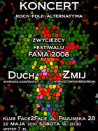 DUCH to projekt, który w nietypowy sposób podchodzi do zagadnienia zwanego poezją śpiewaną. Młodzieńcza energia atomowa oraz biegłe władanie instrumentami dają wybuchowy koktajl który mocno uderza do głowy.
