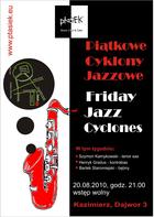20.08.2010 Piątek/ godz. 21:00 Piątkowy Cyklon Jazzowy/ Friday Jazz Cyclone Szymon Kamykowski- saksofon Bartłomiej Staromiejski- perkusja Henryk Gradus - kontrabas. Wybitni muzycy, mieszanka stylów w piątek w Klubie Ptasiek Cafe na Kazimierzu przy ul. Dajwór 3.