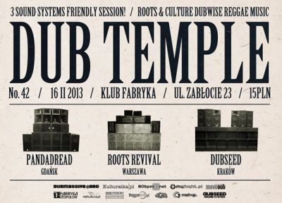 Pierwsza w Polsce dub sesja trzech Sound Systemów wysokiej mocy! 31.08.2012 w krakowskim klubie Fabryka odbędzie się przełomowe wydarzenie na wyraźnie rozwijającej się w naszym kraju scenie soundsystemowej. W jednym miejscu na jednej imprezie pojawią się aż 3 najmocniejsze obecnie na scenie reggae/dub w kraju systemy dźwięku wraz z ekipami je obsługującymi: stołeczny ROOTS REVIVAL SS, trójmiejski PANDADREAD SS oraz krakowski DUBSEED SS.