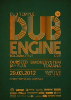 29.03.3012 w niedawno otwartym klubie Dobre Bity zagości świetny włoski duet DUB ENGINE znany z licznych netlabelowych wydawnictw, tworzący w mocnym i tanecznym cyfrowym stylu. Będzie to dubowy live show, połączenie różnej maści efektów i wielokanałowego miksu Nicolna z dynamicznym wokalem Sabriny oraz tworzonych przez nią dźwięków melodiki, fletu i instrumentów perkusyjnych.