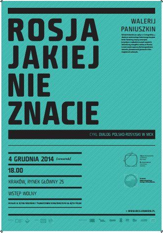 Organizatorzy serdecznie zapraszają na kolejny wykład WALERIJ PANIUSZKIN ROSJA JAKIEJ NIE ZNACIE. 4 grudnia 2014 (czwartek), godzina 18.00 Międzynarodowe Centrum Kultury w Krakowie, Rynek Główny 25. Wstęp wolny, wykład w języku rosyjskim (zapewniamy tłumaczenie)