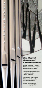 Koncert poświęcony będzie muzyce kompozytorów krakowskich XX wieku. Zostaną zaprezenowane dzieła Łuciuka, Kaszyckiego, Machla, oraz po raz pierwszy fragment wielkiego oratorium F.Nowowiejskiego 'Quo vadis?' w transkrypcji organowej. W Złotej Sali Filharmonii Krakowskiej będzie natomiast wystawiona ekspozycja obrazów witrażowych pienińskiej artystki Jolanty Gładyszewskiej-Tybur, stanowiąca awangardowe uzupełnienie należącej do wykonywanej wieczorem muzyki, która w swoim programie jest sugestywnie obrazowa.